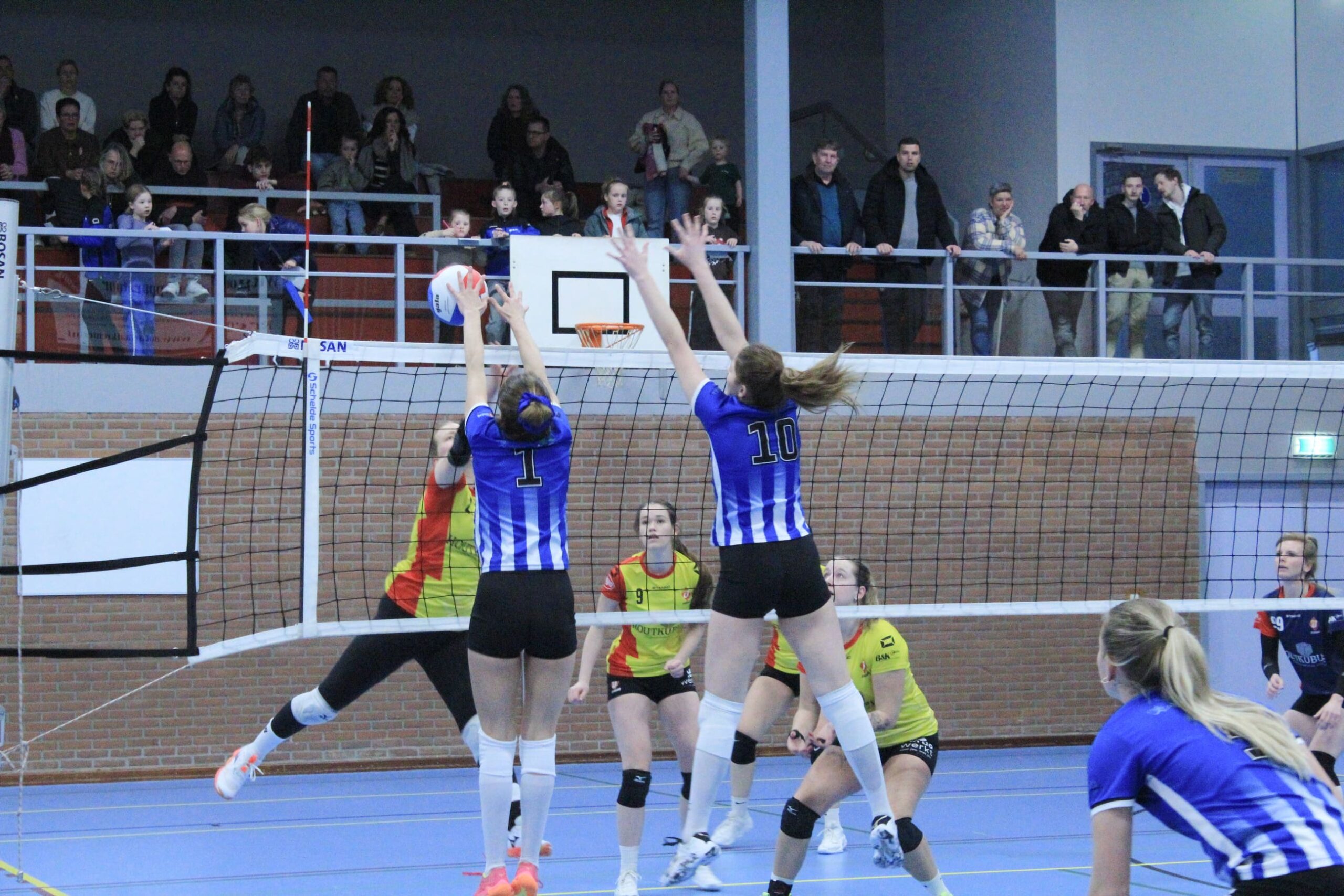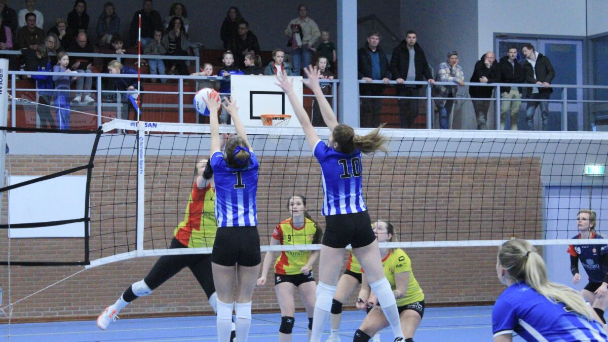 Tijd om bij te komen was er niet. Want zaterdag stond er weer een thuiswedstrijd op het programma tegen Dynamo. Er was versterking van mini van de Week Isa! Toch leek zaterdag wel een kopie van de vorige wedstrijd want weer werden de eerste en vierde set gewonnen door Blauw Wit. De tweede set kwamen de dames nog knap terug van een 19-24 achterstand naar 24-24. Ze vergaten zichzelf helaas te belonen en verloren deze met 24-26.